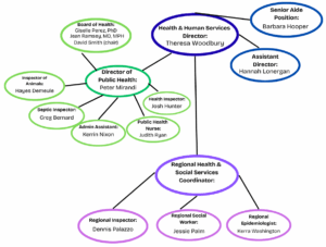 Working in close coordination with the Board of Health, the Hamilton Health Department oversees public health programs and services. Peter Mirandi is the Director of the Hamilton Health Department. The Health Director works in close collaboration with the Board of Health, as well as with part-time staff—including the Public Health Nurse, Food Safety Inspector, Septic Inspector, Animal Control Officer, and Administrative Assistant—in addition to regional public health staff, local officials, and community partners.